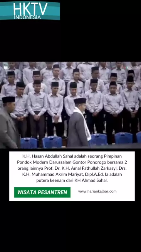 K.H. Hasan Abdullah Sahal adalah seorang Pimpinan Pondok Modern Darussalam Gontor Ponorogo bersama 2 orang lainnya Prof. Dr. K.H. Amal Fathullah Zarkasyi, Drs. K.H. Muhammad Akrim Mariyat, Dipl.A.Ed. Ia adalah putera keenam dari KH Ahmad Sahal. #gontor #pesantrengontor #pesantren #TongueTwisters #bukuhariansnack
