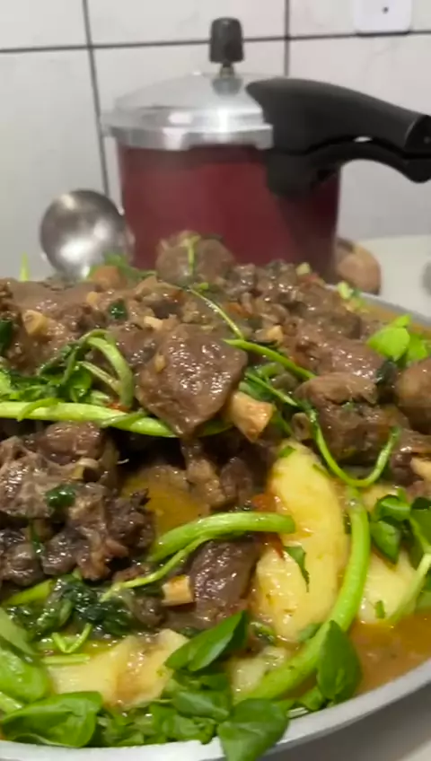 Rabada com polenta e agrião #food #Comida #Receita