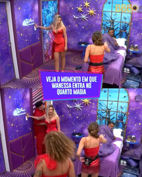 Após o fim da Festa, Yasmin e Pitel levam Wanessa até o Quarto Magia para a sister se organizar para dormir. A cantora entra no cômodo e acorda Davi #BBB24 #BBB #RedeBBB
