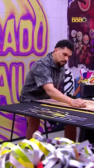 Vinícius começou a montar algumas tiras no painel! 👀 Acompanhe AO VIVO no Globoplay! #BarradoNoBaile #BBB25 #RedeBBB