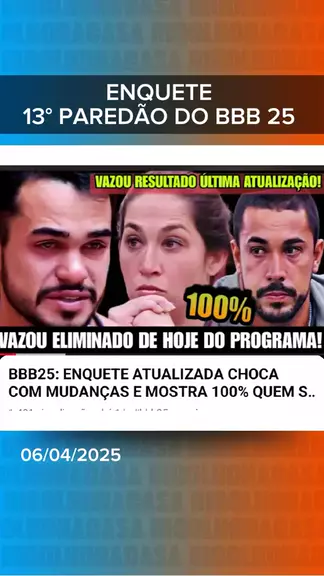 ENQUETE FINAL DO 13° PAREDÃO DO BBB 25 #fofoca #ultimasnoticias #bbb25 #paredao #BomPraKWAI
