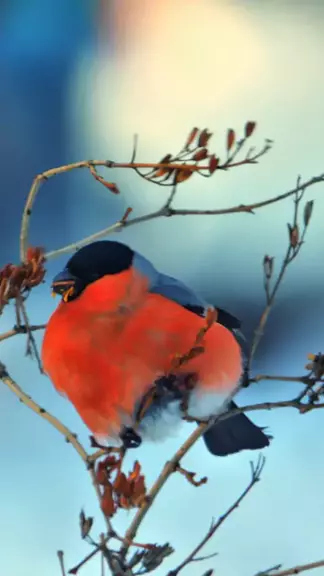 Jumping while eating, burning calories with no fear of gaining weight! The Eurasian Bullfinch (Pyrrhula pyrrhula) is a small passerine bird in the finch family, Fringillidae. #bullfinch #bird #didyouknow