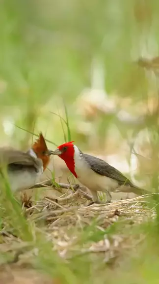 "Mom, should I go on a diet?" —A scene of giant baby bird being fed The Red-crested Cardinal (Paroaria coronata) is a striking songbird native to South America, though it has also been introduced to Hawaii and Puerto Rico. Known for its vibrant scarlet head crest, black-and-white body, and silver-gray beak, this bird adds a splash of tropical color to open woodlands, gardens, and shrublands. #redcrestedcardinal #bird #didyouknow