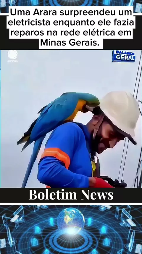 Uma Arara surpreendeu um eletricista enquanto fazia reparos em uma rede elétrica em Minas Gerais. #balancogeral #rederecord #minasgerais #noticias #ultimasnoticias