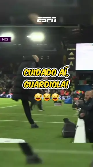 Cuidado aí, Guardiola! 😂😂😂 O técnico do Manchester City bicou a garrafa de água no membro da comissão técnica e ficou desesperado! #PremierLeague
