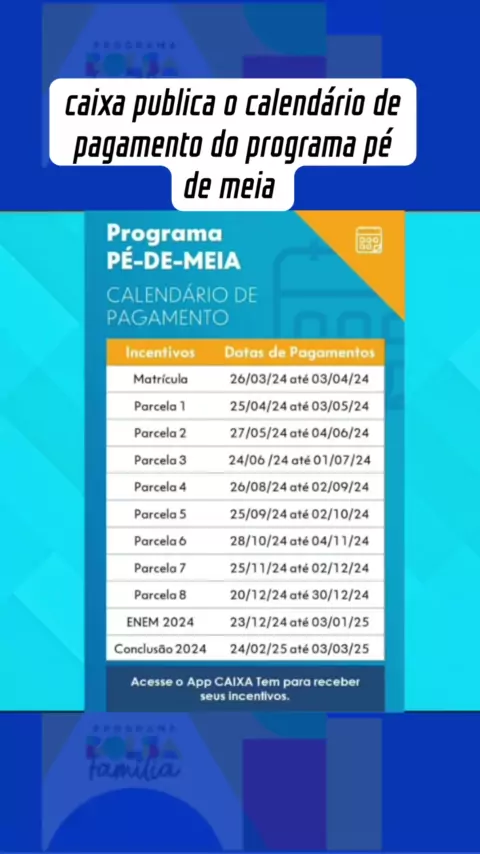 caixa publica o calendário de pagamento do programa pé de meia #BolsaFamilia #governo #pedemeia #Notícia #BolsaFamilia