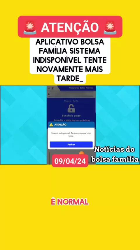 APLICATIVO BOLSA FAMÍLIA SISTEMA INDISPONÍVEL TENTE NOVAMENTE MAIS TARDE_