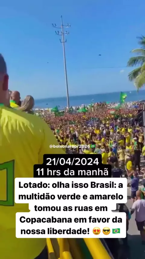Lotado: olha isso Brasil: a multidão verde e amarelo tomou as ruas em Copacabana em favor da nossa liberdade! 😍😎🇧🇷