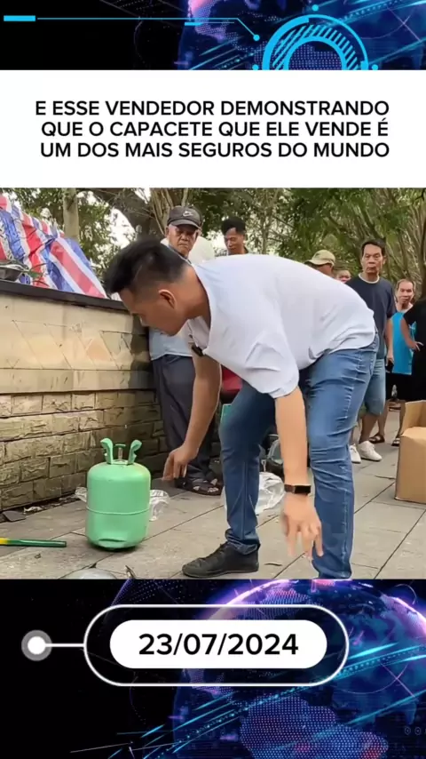 E ESSE VENDEDOR DEMONSTRANDO QUE O CAPACETE QUE ELE VENDE É UM DOS MAIS SEGUROS DO MUNDO #noticias #ultimanoticia #informacoes #News #Capacete