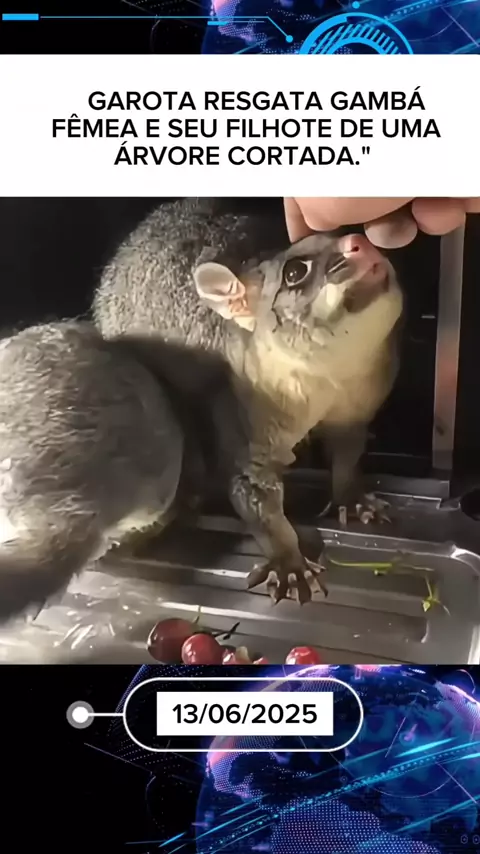 GAROTA RESGATA GAMBÁ FÊMEA E SEU FILHOTE DE UMA ÁRVORE CORTADA." #noticias #entretenimento #ultimasnoticias #News #animal