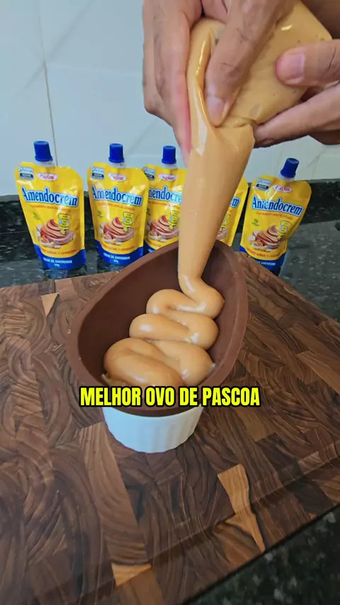Receita de Ovo de Pascoa de colher com Brigadeiro de Amendocrem. Ingredientes Casca do Ovo Aproximadamente 200g de Chocolate meio amargo Recheio 395g - Leite Condensado 100g - Creme de Leite 1 - Sache de Amendocrem Crocante de Amendoim 150g - Amendoim 200g - Açucar refinado #PáscoacomAmendocrem #Receita #receitasimples