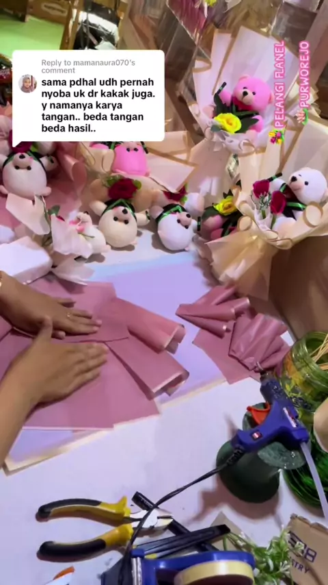 Replying to @mamanaura070 ini aku pakek di versi kecil juga masih bisa kak 😊✌️semangatt kaka…#crafter#tutorialbuket#buketmurah#buketpurworejo#pelangiflanel#wrappingtutorial#wrapping