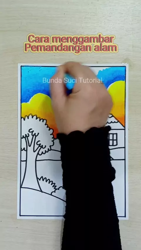 Cara menggambar pemandangan. alam yang mudah #bundasucitutorial #art #caramenggambar #menggambarmudah #pemandangan