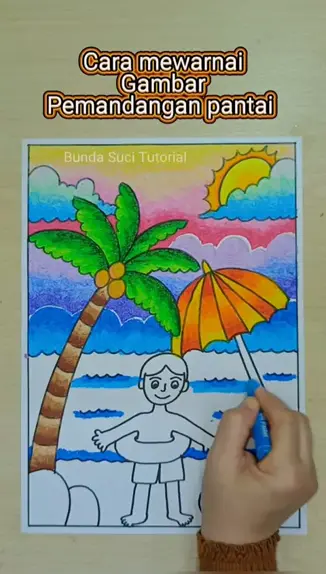 Cara menggambar pemandangan pantai #bundasucitutorial #art #caramenggambar #menggambarmudah #mewarnai
