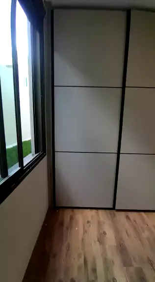 guarda roupa duas portas de correr com puxadores e frisos preto