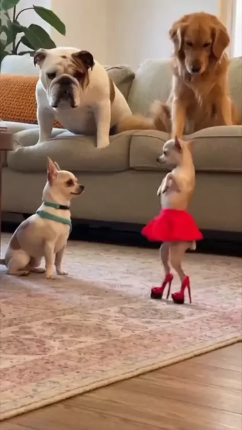 Not one dog blinked, they're processing 🤣 #hadtoshare #chihuahua #dancing