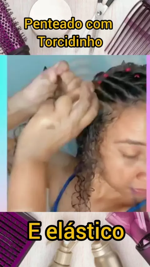 Penteado com torcidinho e elástico #penteadosfaceis #cabeloscacheados #modafashion #cabelo #penteados