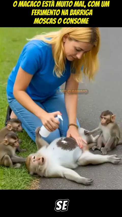 o macaco com uma ferida aberta na barriga moscas tomam conta #educação #viaanimal #foryou #ia #viraliza