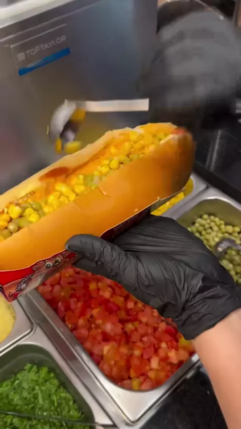 Você nunca viu nada igual: o Cachorrão Turbo brilha com sua capa de queijo crocante, uma verdadeira obra-prima! 🌟🌭 #cachorroquente #fastfood #viral