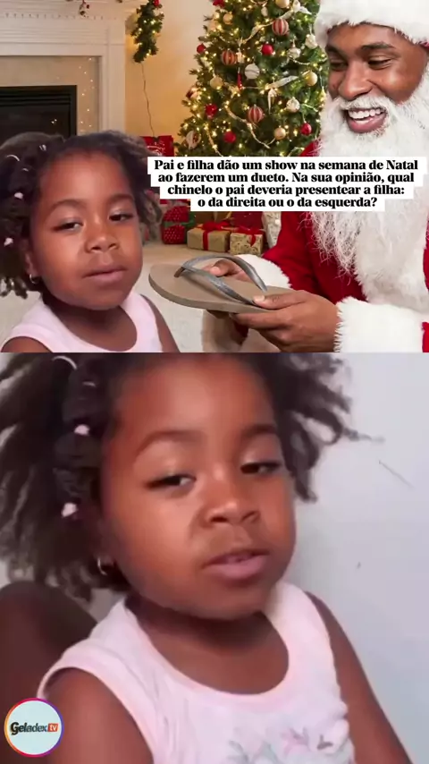 Pai e filha dão um show na semana de Natal ao fazerem um dueto. Na sua opinião, qual chinelo o pai deveria presentear a filha: o da direita ou o da esquerda?