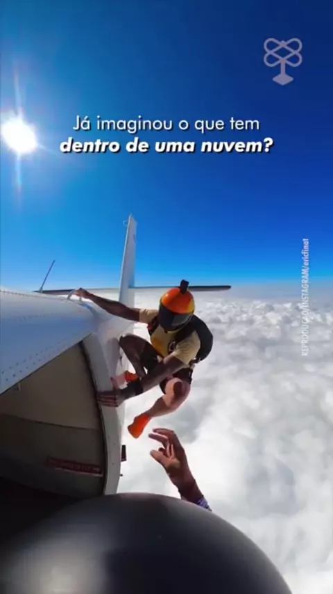 Pára-quedista muito corajoso que coisa linda passou dentro da nuvem.