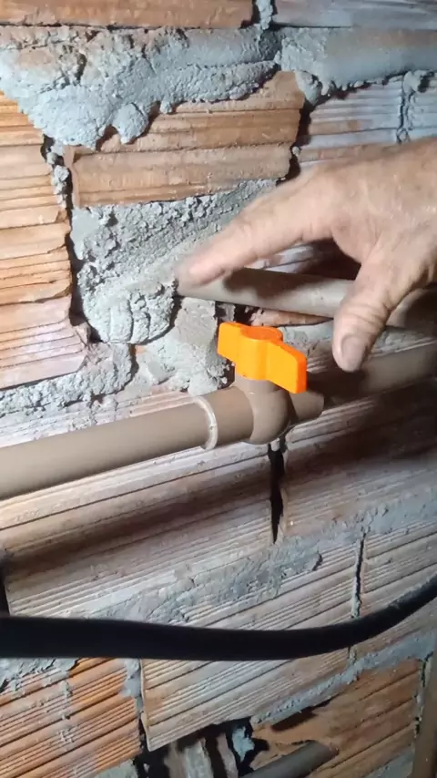 Colocando o registro na caixa d'água.