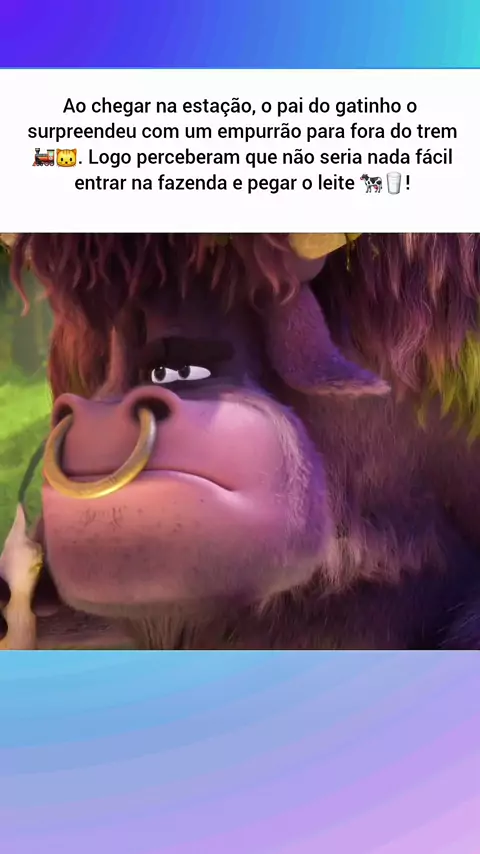 Ao chegar na estação, o pai do gatinho o surpreendeu com um empurrão para fora do trem 🚂🐱. Logo perceberam que não seria nada fácil entrar na fazenda e pegar o leite 🐄🥛!
