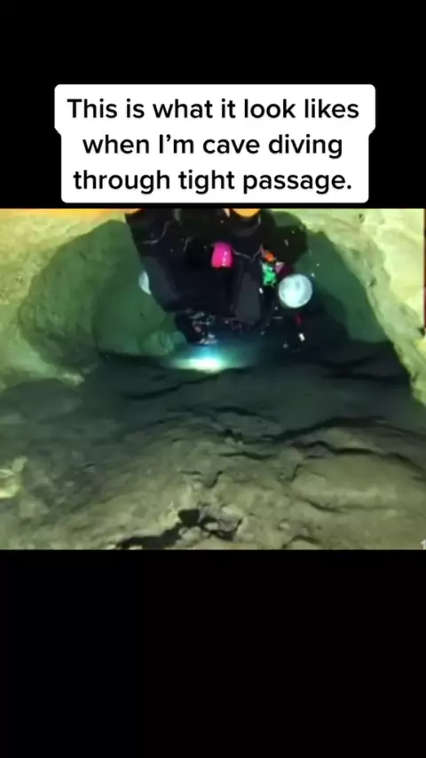 Isto é o que parece quando estou mergulhando na caverna através da passagem certa. # cavediving # sidewinder # scubadiving # narrow