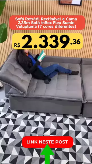 Sofá Retrátil Reclinável e Cama 2,35m Sofá inBox Flex Suede Velupluma Cinza Por R$ 2.339,36🔥💣🧡 Compre em: https://www.casitaon.com.br/s?q=sof%C3%A1+flex&fuzzy=0&operator=and&facets=fuzzy%2Coperator&sort=score_desc&page=0 #moveis #casa #decoração #cozinha #quarto