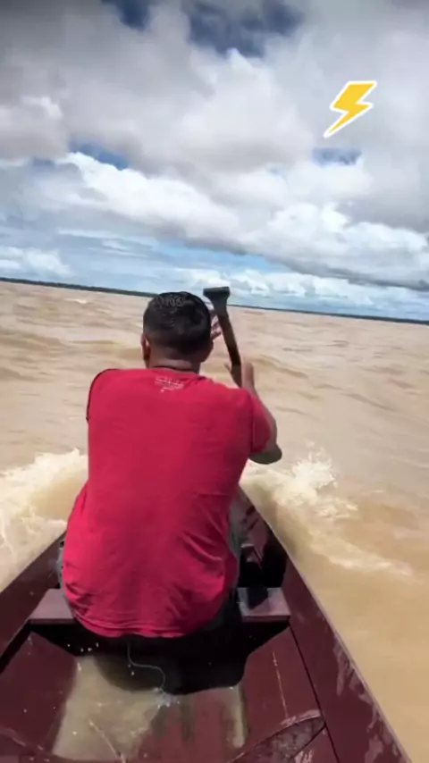 2 homens pegando banzwiro/marola de um Transatlântico no Amazonas #rio #manaus #amaoznas