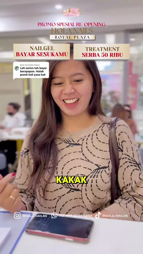 Membalas @Raisya TREATMENT NAILGEL BAYAR SESUKAMU‼️ Hanya di Spesial Re-Opening Hola Nailss Royal Plaza 😍. Nggak cuma itu aja karena ada banyak promo promo lainnya : - TREATMENT SERBA 50 RIBU ‼️ - EYELASH DISKON 20% ALL TIPE ‼️ Jadi catet tanggalnya dan jangan sampai kelewatan promonya. Inget ya kalau mau treatment lengkap yang murah, berkualitas, bergaransi dengan pelayanan bintang 5✨, Langsung aja datang ke Hola Nailss dan buktikan sendiri kualitasnya 🥰 #na#naila#nailarty#eyelasha#waxinga#...