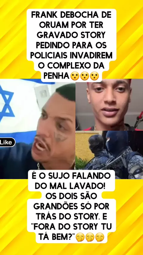 Frank debocha de oruam por ter gravado Story pedindo para os policiais invadirem o complexo da penha😮😮😮
