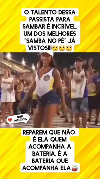 O talento dessa passista para sambar é incrível. um dos melhores "samba no pé" já vistos!!!😯😯😯