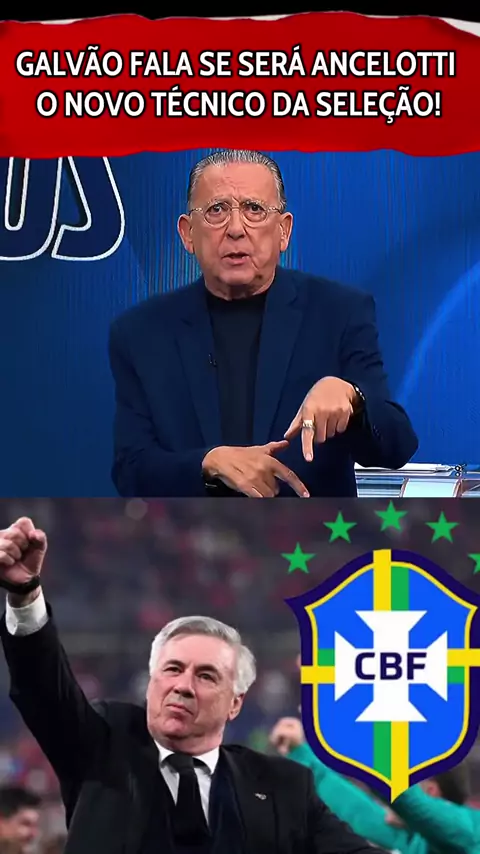 Galvão fala se Ancelotti vai ser o novo técnico da seleção brasileira #SeleçãoBrasileira #ancelotti #cbf #ultimasnoticias #esporteviral