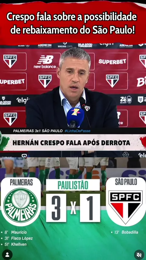 Crespo fala sobre a possibilidade de rebaixamento do São Paulo #palmeiras #PalmeirasXSaoPaulo #saopaulo #esporteviral #Paulistão