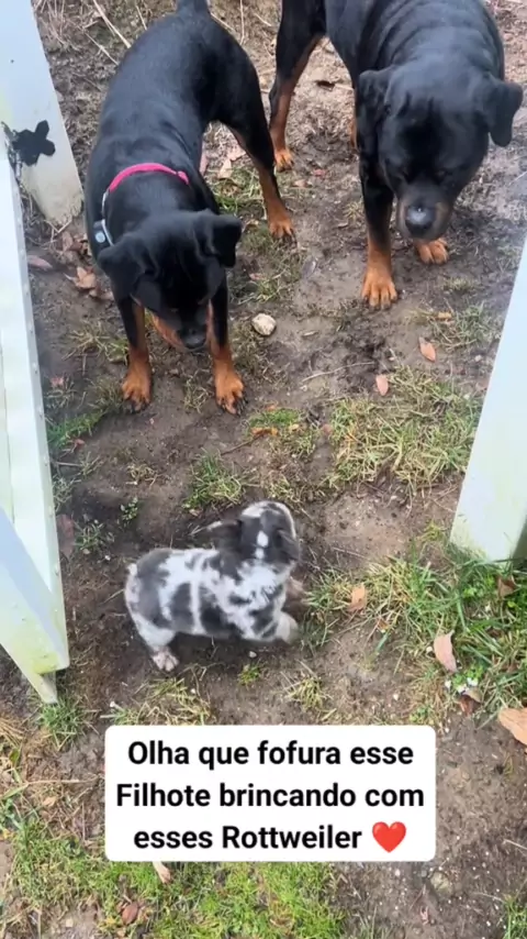 Olha que fofura brincando com esses Rottweiler
