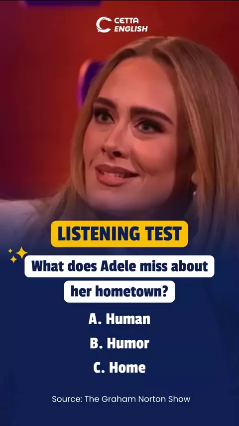 Banyak yang bilang aksen Bahasa Inggris-nya Adele itu susah banget dipahami sama telinga orang. Nah, coba test kemampuan speaking kamu! Kira-kira jawabannya apa ya? Jawab di kolom komen!✅✨ #cettaonlineclass #cettaenglish #bahasainggris #belajarbahasainggris #belajarbahasainggrisonline @Cetta English