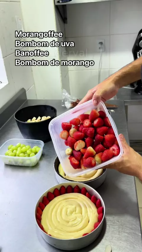 Morangoffee, Banoffee, bombom de uva e bombom de morango. Qual você ama mais ? #KwaiChef #cake #sobremesas