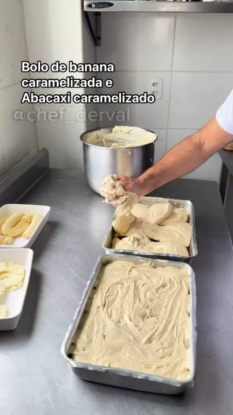 Bolo de banana caramelizada e abacaxi caramelizado #bolo #cake #KwaiChef #sobremesa