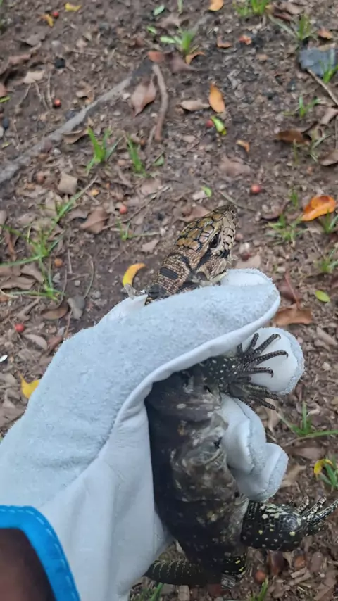 devolvendo o filhote de lagarto a natureza