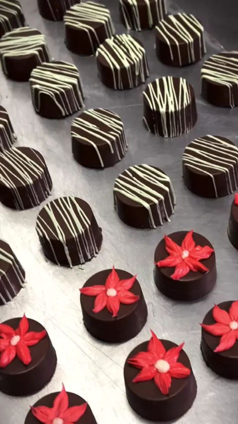 Vem comigo para uma produção de 50 bombons 🍫 Os BOLOS predominam a minha cozinha, mas esse pedido eu não pude negar, foi para uma cliente que já está comigo a 4 anos e ela me fez esse pedido para por dentro de uma sacolinha com outros mimos para presentear a equipe. Ela queria simples, mais meu espírito artesão falou mais alto 😅 Chocolate - @salwarechocolates Forma - @portoformas Bico 102 @magoindustria Usei na decoração das flores minha ganache que seca, ficou mais fácil para embalar.