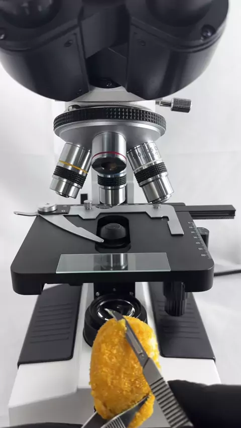 Nuggets no microsc贸pio 馃構 #nuggets #mcdonalds #frango #ciencia #microscopio