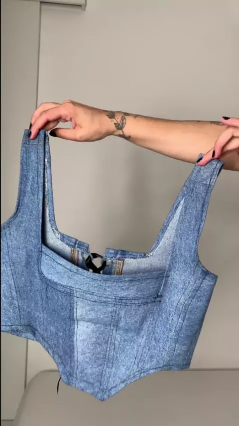 Resolvi fazer meu próprio corselet jeans utilizando uma calça jeans que não me servia mais e tava a um tempão guardada. 💙 Eu amei e vocês??? #corselet #costura #moda #upcycling #upcicling