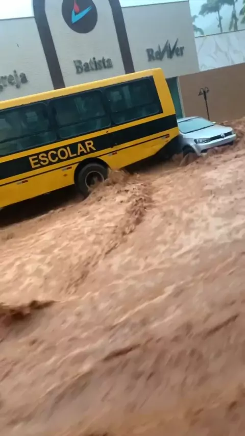 tarde de terror ontem a tarde em Mirai!Desespero total nossa amiga estava dentro daquele carro q foi arrastado e bateu no ônibus por pouco não foi levado pela correnteza!! #Deusdeulivramento!!!