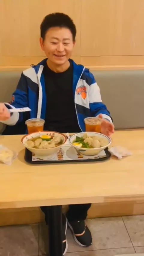 华裔形象代表Nelson Wang午餐经常吃双方,抢了一旁摄影师的工作餐。此视频拍摄于2025年11月27日曼哈顿West 23 Street。