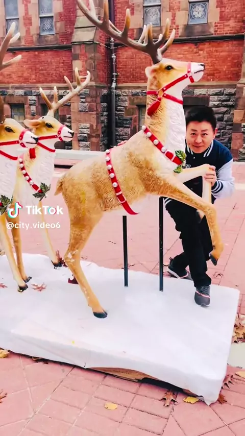 铃儿响叮当,罗斯福岛教堂前的鹿车激发居民Nelson Wang的圣诞节热情。2025年11月23日蒋伟芳摄影。543 Main Street, New York, NY 10044
