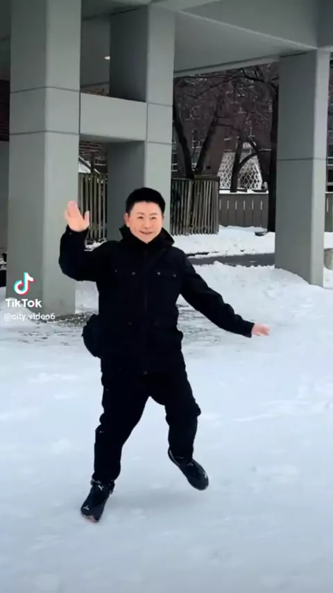 罗斯福岛雪景带给居民Nelson Wang无穷欢乐。 2026年1月26日曼哈顿