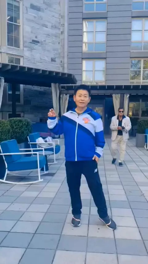 深居简出的鲍戈,在曼哈顿豪华公寓的内院翩翩起舞。 (此片由孙燕萍女士拍摄于2025年10月21日。)