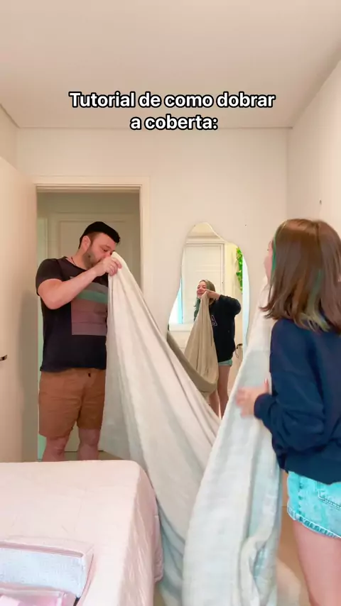 Dobrando a coberta juntos