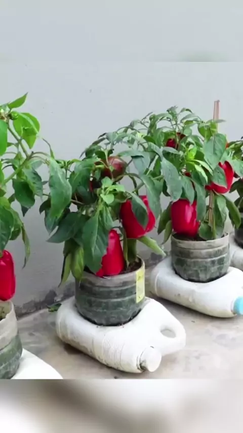 pimentão produzindo bastante em garrafa pet #horta #hortaemcasa #topz #fruta #pimentao